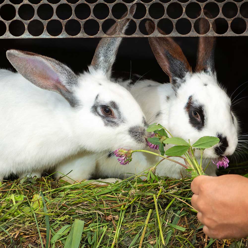 • Feeding rabbits.